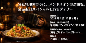 宮廷料理の香りに、バンドネオンの余韻を。LIVE&海老ビリヤーニープレートディナー