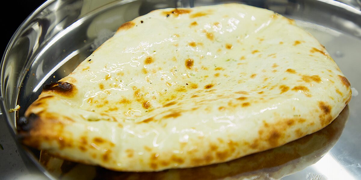 このバターチキンに欠かせない相棒が、フセインシェフのタンドール窯で焼き上げるナーンです。